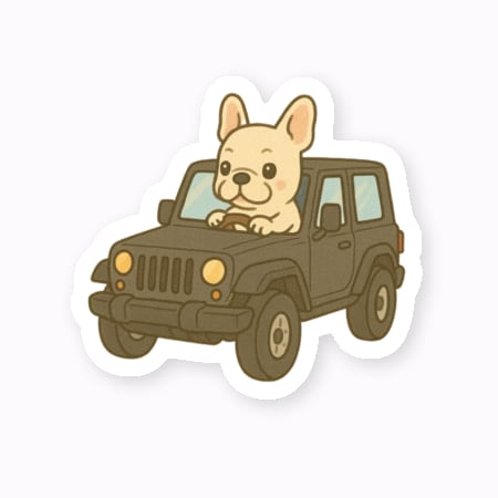 フレンチブルドッグの「ぶる太くん」がゴキゲンにジープでお出かけ中♪